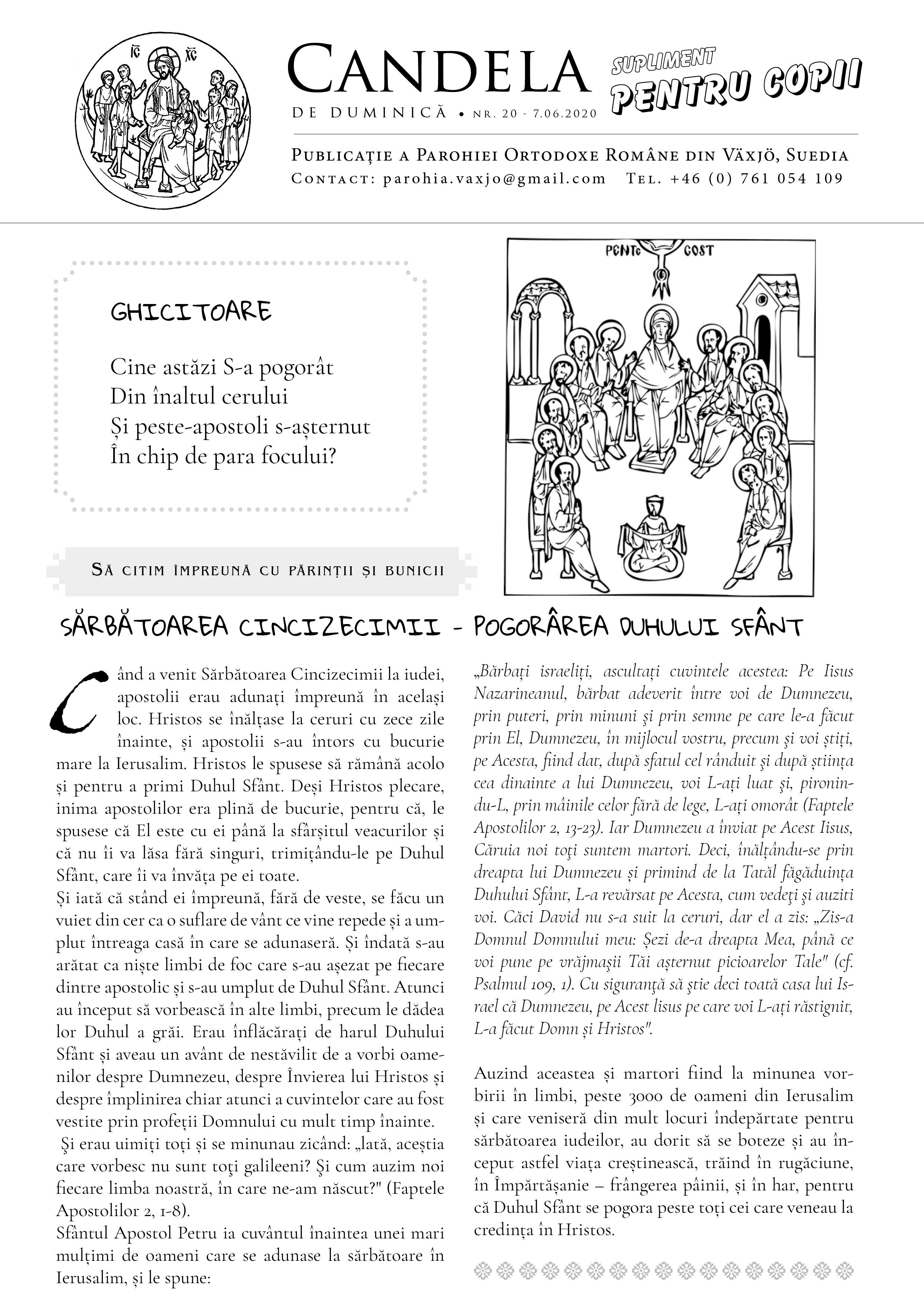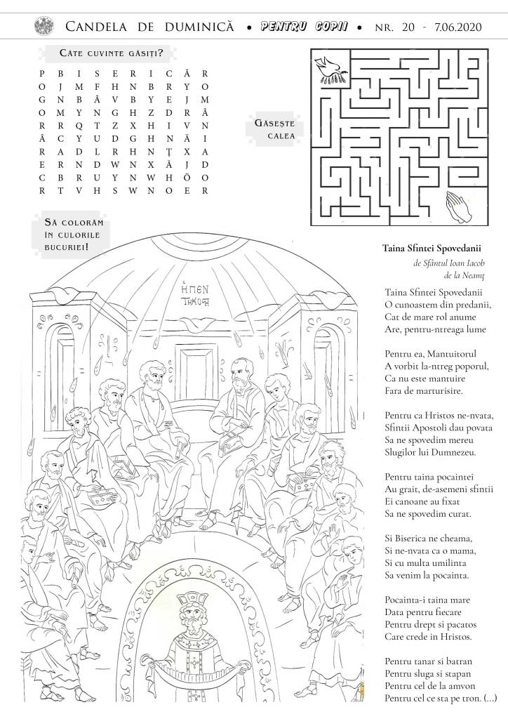 Și întrucât este și „Duminica Părinților și a Copiilor”, fiind prima duminică din luna iunie, conform hotărârii Sfântului Sinod din anul 2009, vă oferim și un supliment pentru copii în special, pe care părinții și bunicii îl pot folosi pentru a putea petrece un timp cu bucurie și folos duhovnicesc împreună cu cei mici.