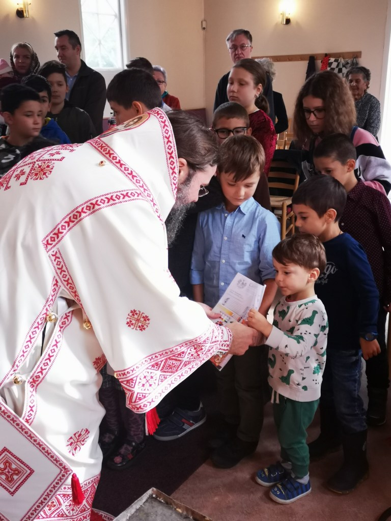 Ne-am bucurat de la mic la mare, prin slujirea, cuvântul de învățătură și binecuvântarea Preasfințitului, însoțită de o iconiță pe care a primit-o fiecare credincios la momentul miruirii. După agapa frățească, am ascultat cu toții un mic recital la pian oferit de Maria, Antonie și Delia, care și-au manifestat în mod deosebit dorința de a cânta și a ne înmulți astfel bucuria acestei zile.