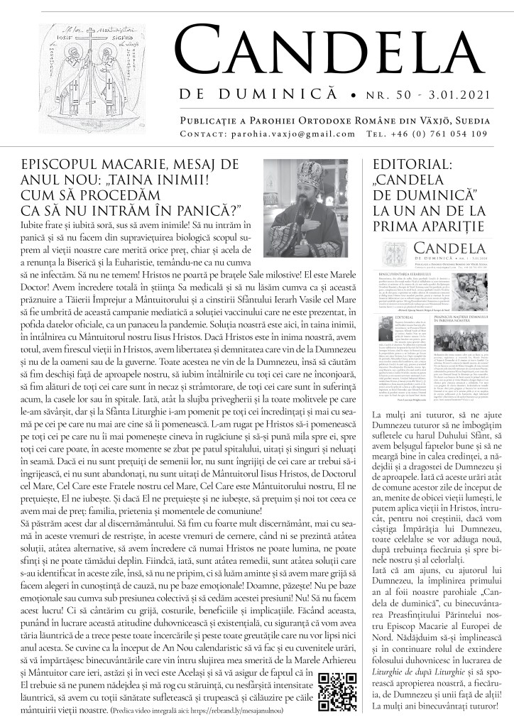 Iată, și foaia noastră parohială împlinește un an, în cele 50 de ediții de până acum, cu mila lui Dumnezeu și cu binecuvântarea Părintelui nostru episcop Macarie al Europei de Nord.