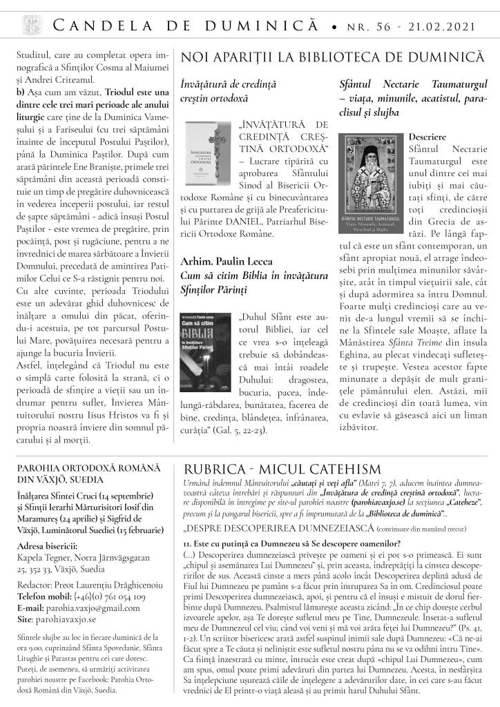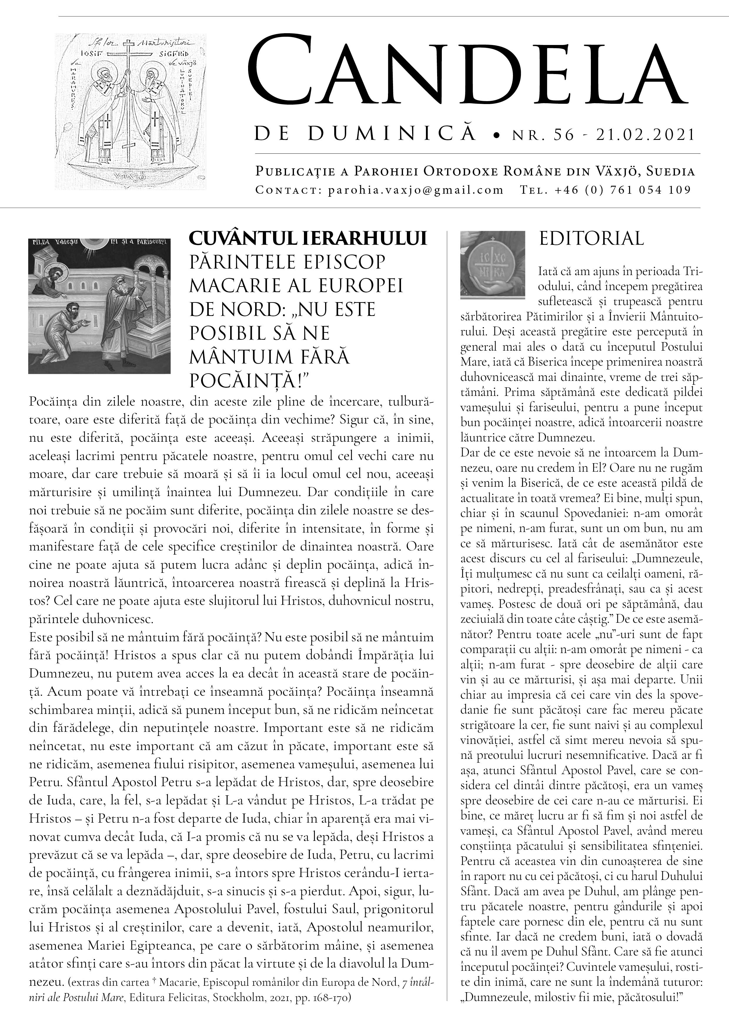 Atașăm foaia parohială pentru această săptămână, din care redăm mai jos editorialul despre Evanghelia zilei, scris din inimă pentru inimă, valabil deopotrivă pentru fiecare dintre noi: