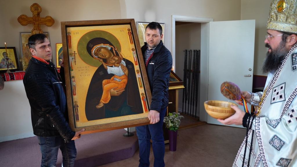 Slavă Domnului pentru toate! Mulțumim Preasfințitului Părinte Macarie al Europei de Nord pentru că, prin dania sa pentru parohia noastră, cerurile s-au deschis și Maica Domnului a coborât prin minunata sa icoana în mijlocul nostru, aducându-L pe Hristos în sufletele și în inimile noastre, ale tuturor! Icoana poartă numele „Cea cu Har Dăruită de la Växjö” și este realizată de pictorul Mihai Coman după modelul Keharitomeni (din limba greacă: Cea cu Har Dăruită) de la Mănăstirea Xenofont din Sfântul Munte Athos. Mulțumim tuturor pentru osârdia și jertfa pe care a făcut-o fiecare cu dragă inimă în toate cele necesare prăznuirii cu bună cuviință, Dumnezeu să primească și să vă binecuvinteze dimpreună cu familiile dumneavoastră și cu cei pe care îi purtați în inimă!Maica Domnului cu noi toți!
