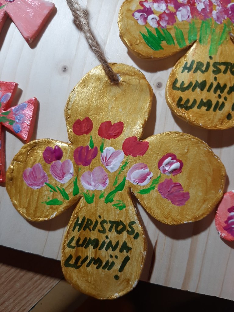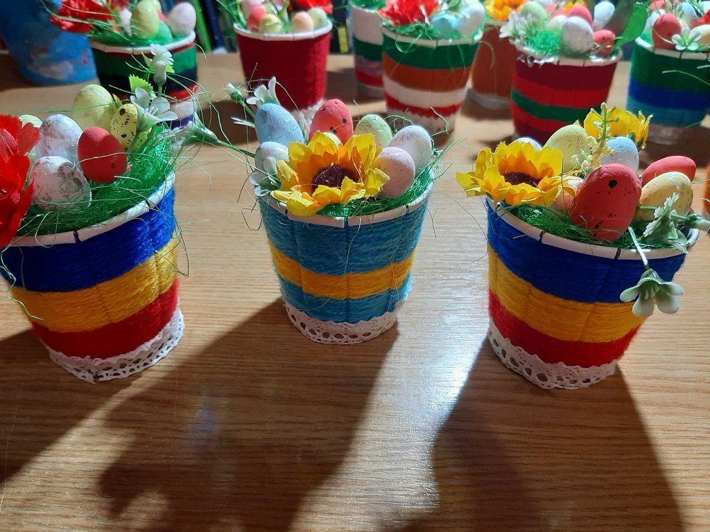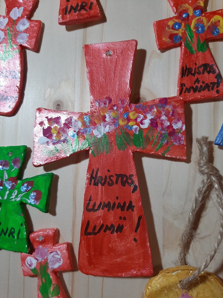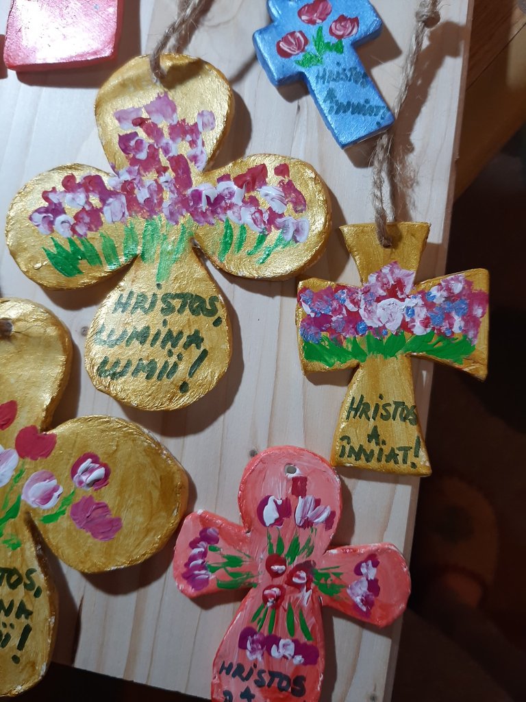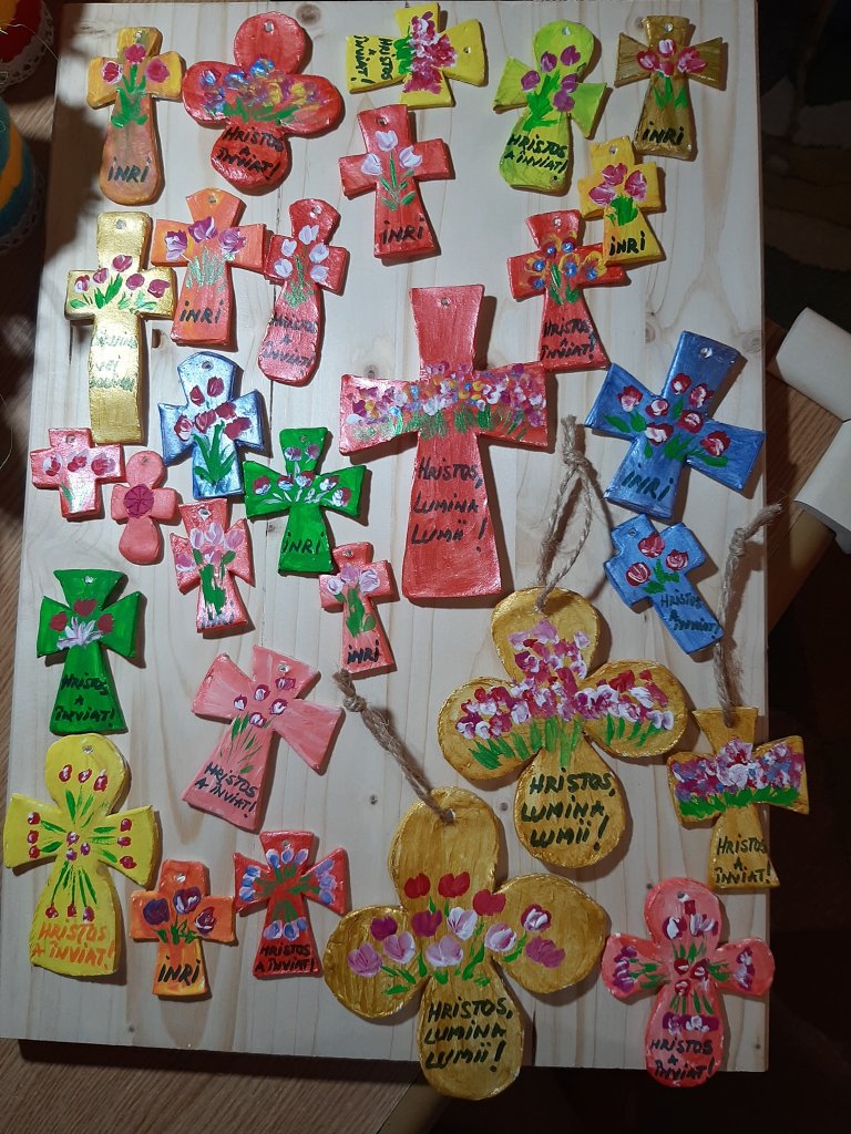 Mulțumim copiilor de la Centrul catehetic al Parohiei Progresul din București, care, la îndemnul Părintelui Iulian Slamna și prin truda dnei Mariana Grigoriu, ne-au bucurat cu mărțișoare, la începutul lunii martie, și acum, de Paști, cu lumânări pictate și alte daruri minunate.