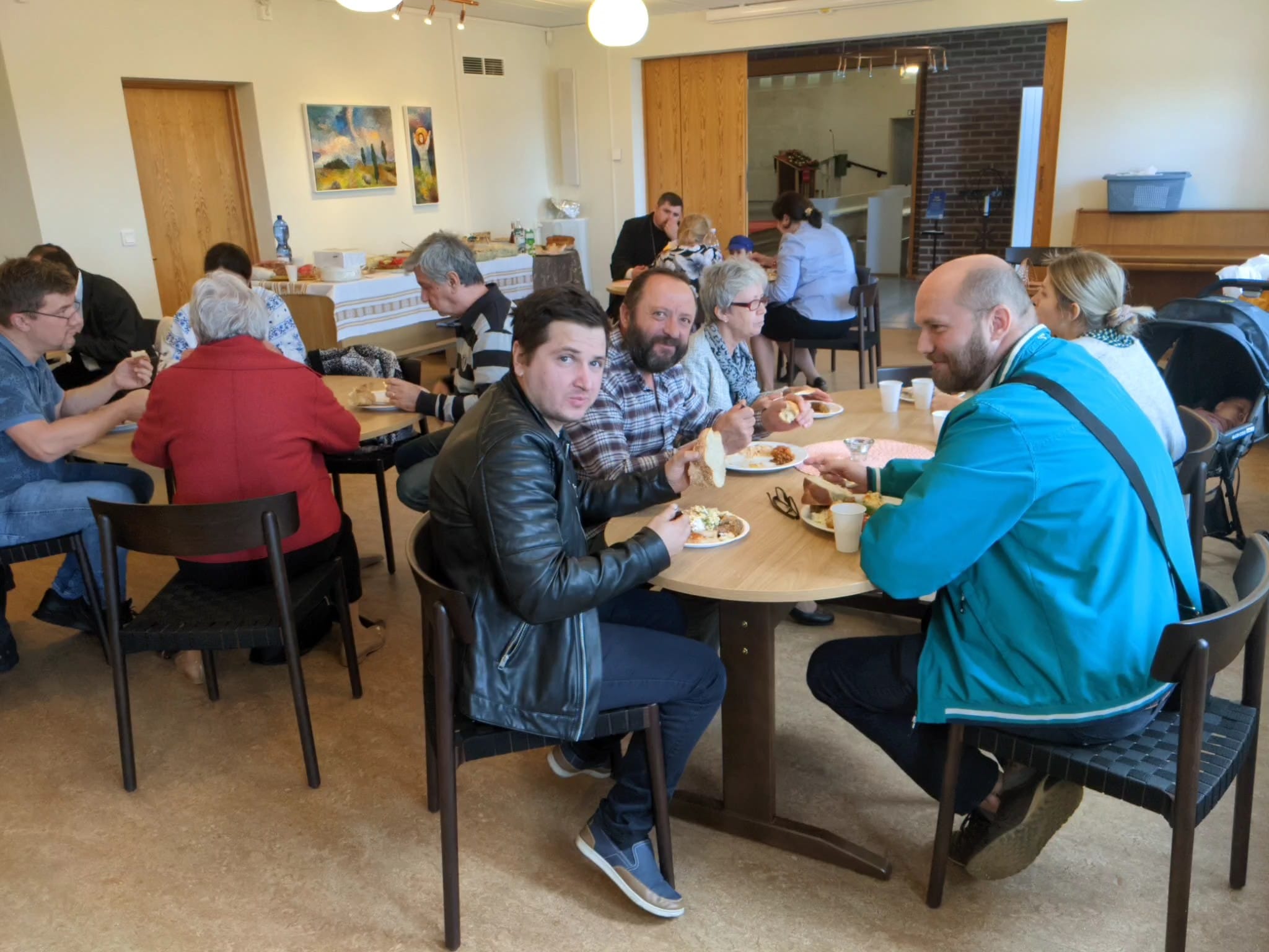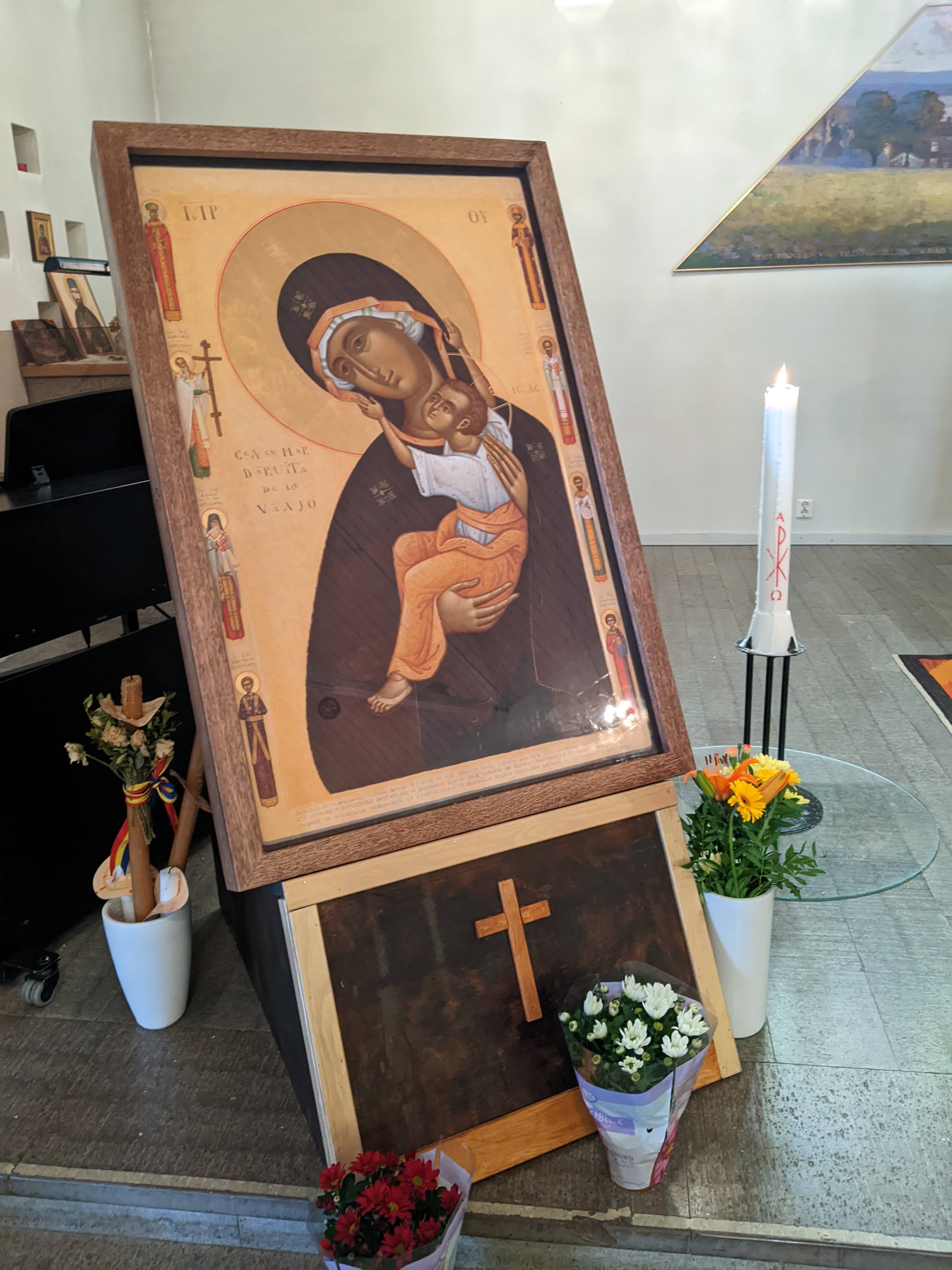 Puterea Sfintei Cruci să fie cu noi toți! Mulțumim tuturor pentru bucuria de a fi împreună în ziua Praznicului Înălțării Sfintei Cruci și de a o cinsti în primul rând prin Mărturisire și împărtășirea de Sfintele Taine. Domnul să răsplătească tuturor osteneala și iubirea cu care și-au jertfit din timp și au urmat îndemnul lui Hristos de a fi cei dintâi prin slujirea celorlalți! Ne-am bucurat de împreună-rugăciunea Părintelui Andrei-Valerian Dănilă de la Kalmar și a familiei sale. Fără a avea intenția sau posibilitatea de a face un eveniment de amploare din motive subiective, Domnul a rânduit totuși, prin purtarea de grijă și binecuvântarea Părintelui Episcop Macarie al Europei de Nord, să avem parte de un festin duhovnicesc aparte și de o agapă mai mult decât îndestulătoare pentru o zi de post :).