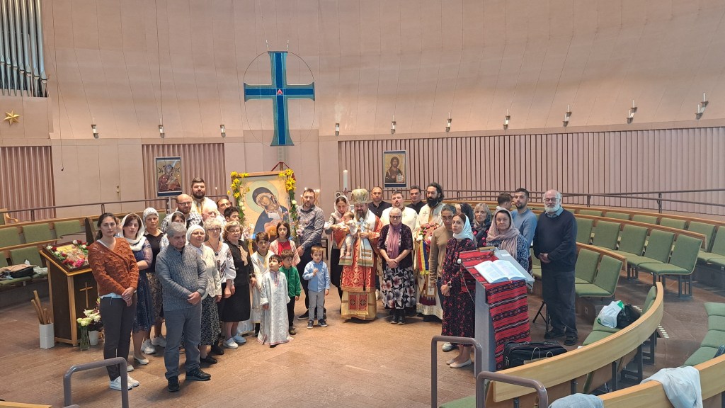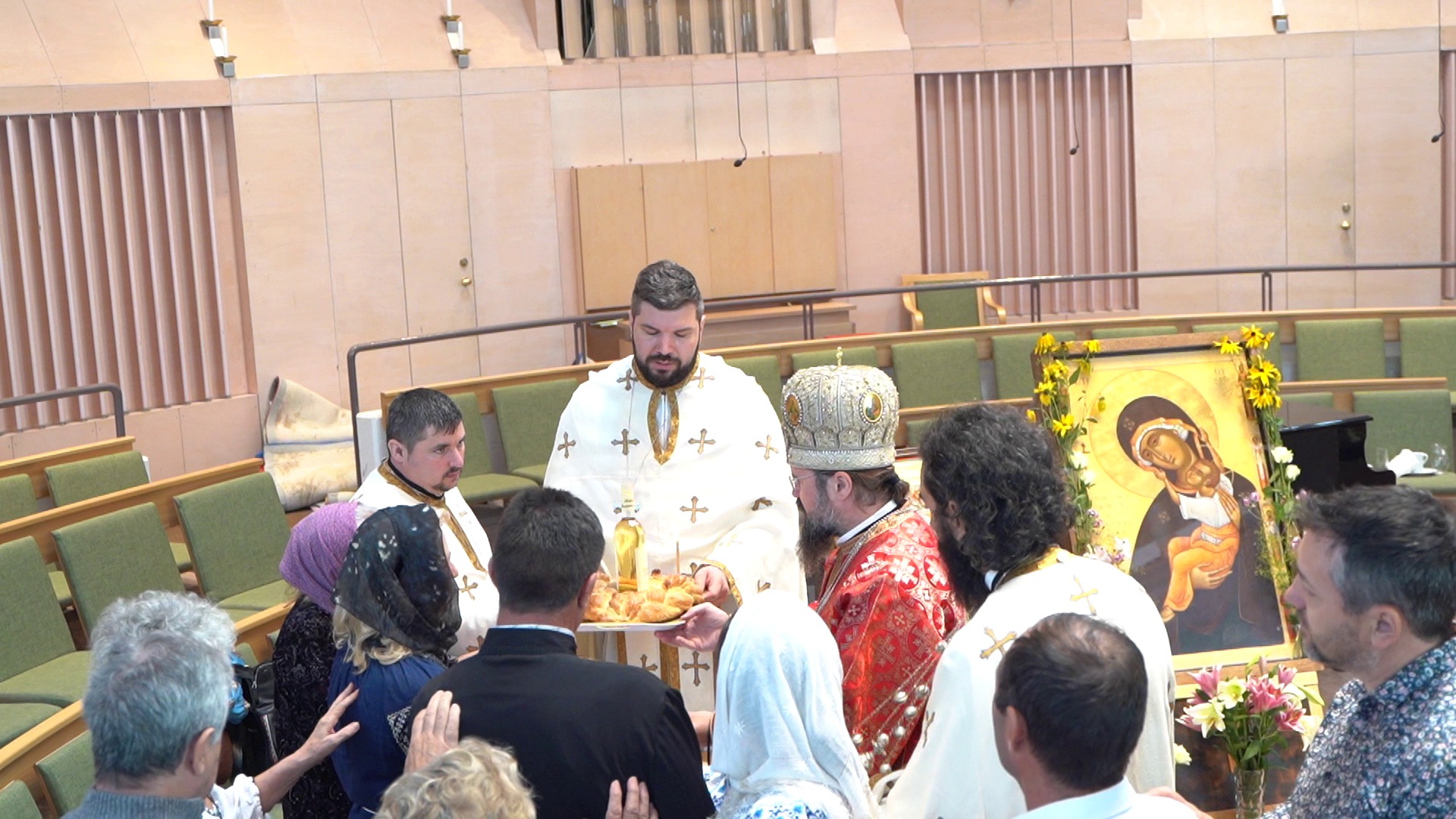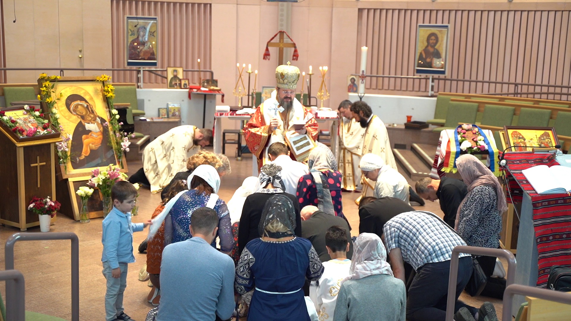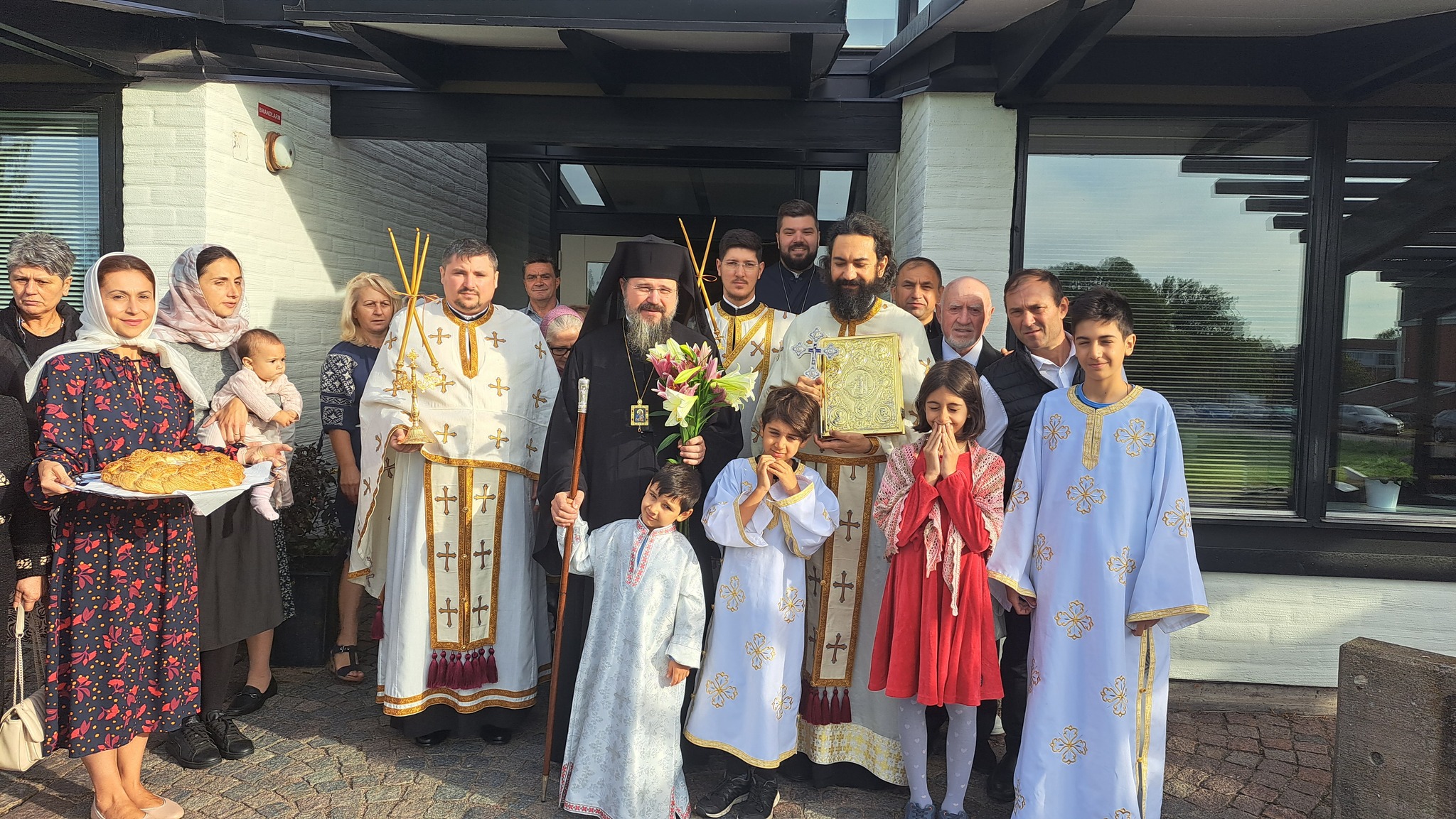Mulțumim Preasfințitului Părintelui nostru Episcop Macarie al Europei de Nord care ne-a adus această iubire jertfelnică înainte prin prezența, purtarea de grijă și slujirea Sa în mijlocul nostru cu ocazia hramului parohiei noastre! De asemenea, îi mulțumim pentru că ne învață și ne îndeamnă să ne facem semnul Sfintei Cruci cu credința nevinovată a copilăriei eterne ca virtute fără de care niciunul dintre noi nu va intra în Împărăția Cerurilor.