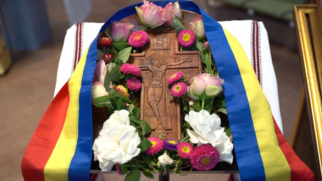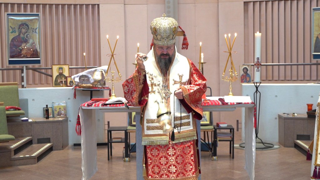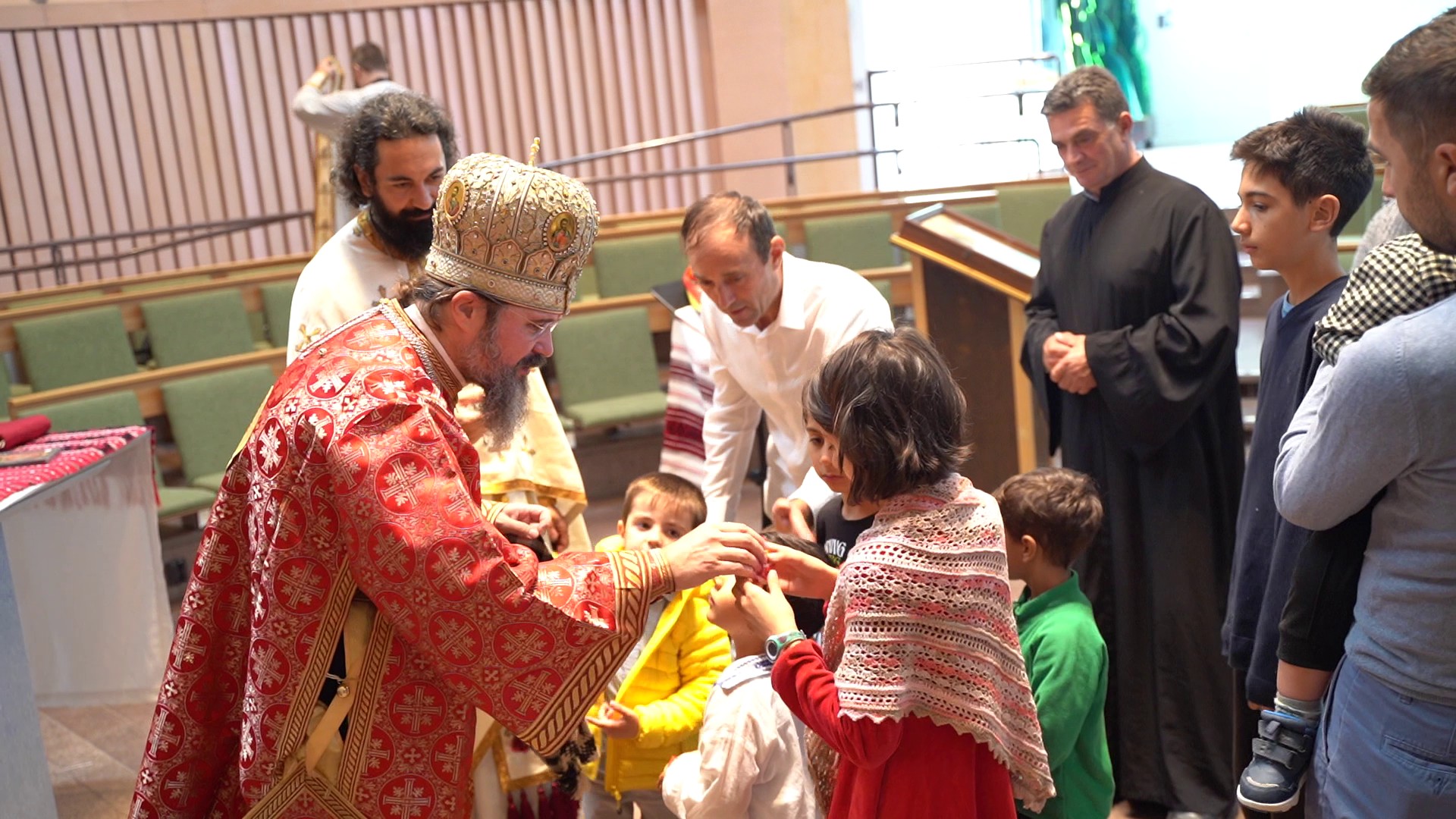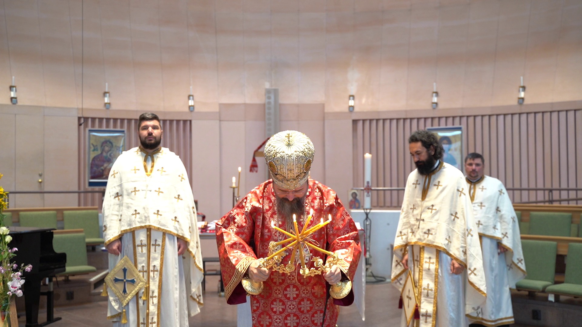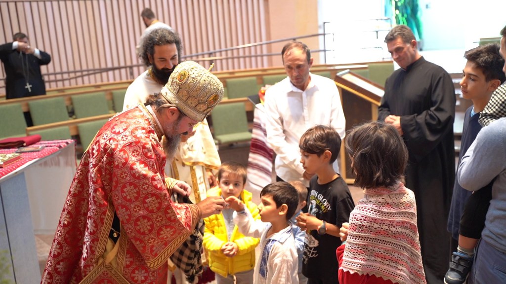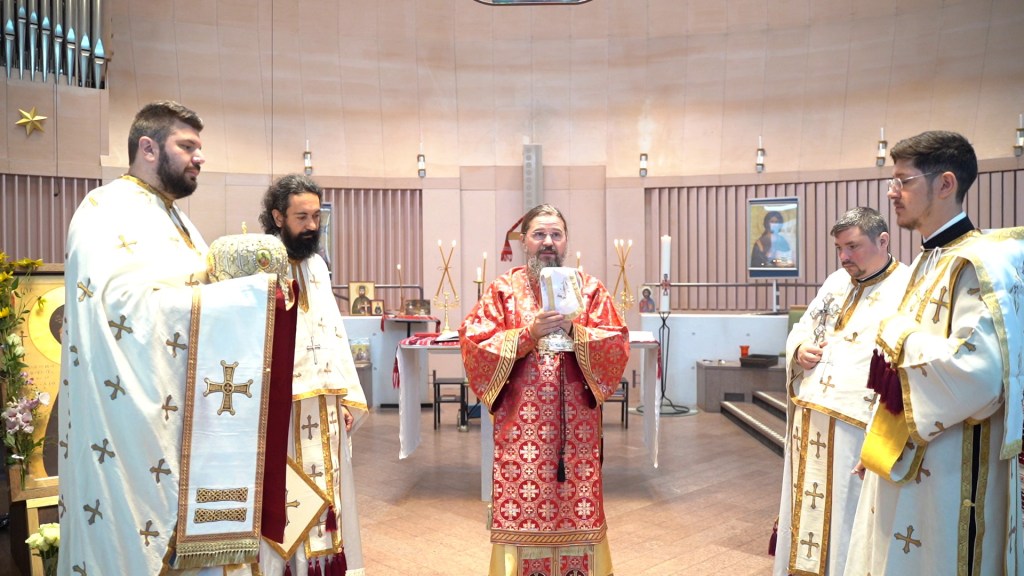 Mulțumim Preasfințitului Părintelui nostru Episcop Macarie al Europei de Nord care ne-a adus această iubire jertfelnică înainte prin prezența, purtarea de grijă și slujirea Sa în mijlocul nostru cu ocazia hramului parohiei noastre! De asemenea, îi mulțumim pentru că ne învață și ne îndeamnă să ne facem semnul Sfintei Cruci cu credința nevinovată a copilăriei eterne ca virtute fără de care niciunul dintre noi nu va intra în Împărăția Cerurilor.