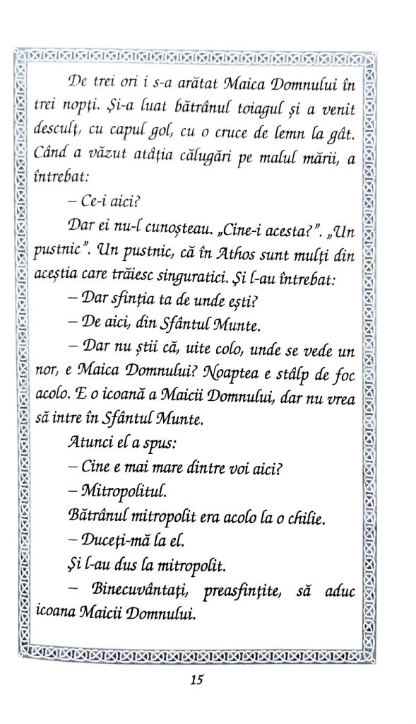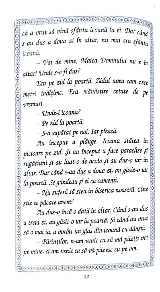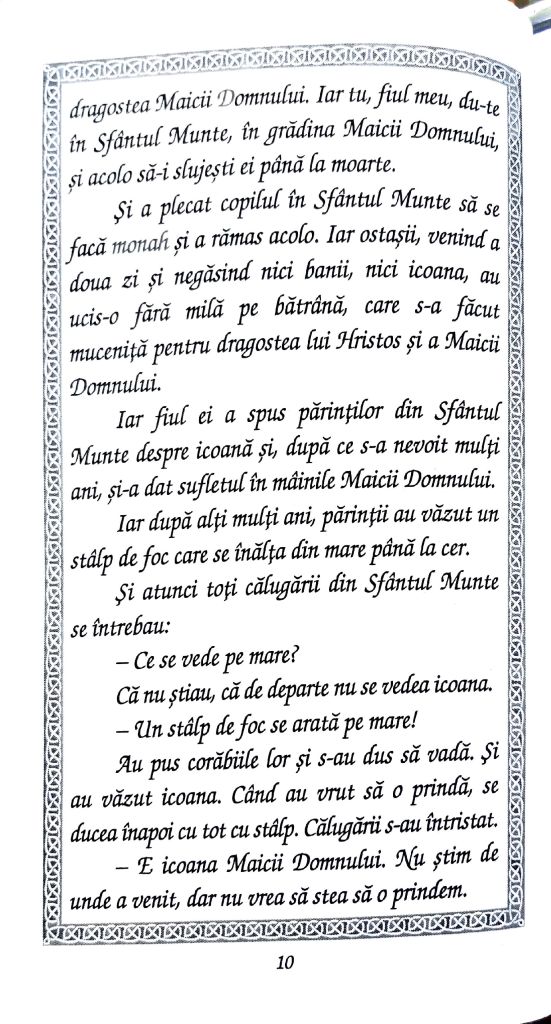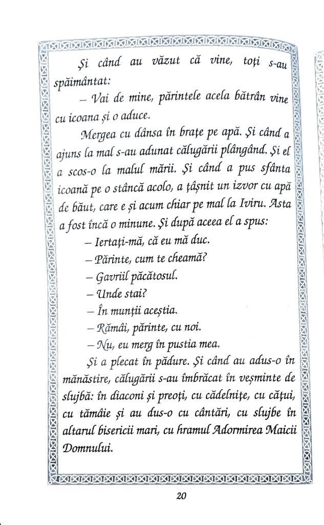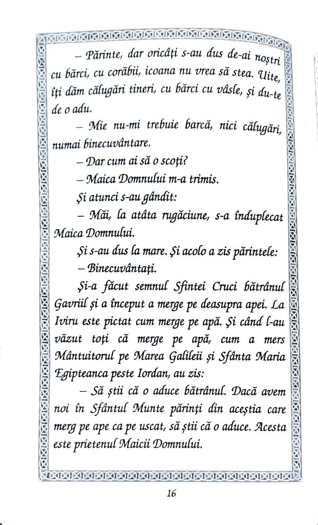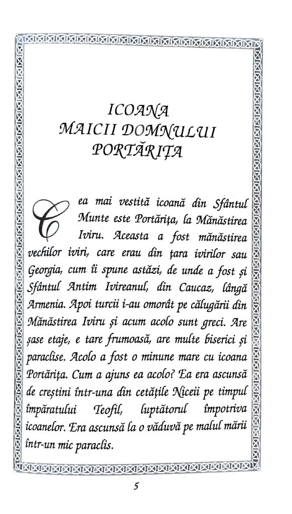 Una dintre lucrările minunate a fost cea asupra icoanelor salvate de la distrugere și prin care s-au făcut minuni numeroase până astăzi. Un astfel de exemplu este icoana „Portărița” de la Mănăstirea Iviron din Muntele Athos, a cărei istorie o pun la inima frățiilor voastre prin cuvintele Părintelui Cleopa Ilie (Povestiri pentru copii, vol. 7, Editura Mănăstirii Sihăstria, pp. 5-23) din imaginile de mai jos. Post cu folos și bucurie tuturor și să ne ajute Domnul să ne revedem și în slujire cât de curând! Vă mulțumesc din suflet pentru rugăciunile, gândurile bune și ajutorul frățiilor voastre din toată vremea și mai cu seamă în aceste momente mai delicate pentru mine, Domnul să vă răsplătească prin Harul Său!